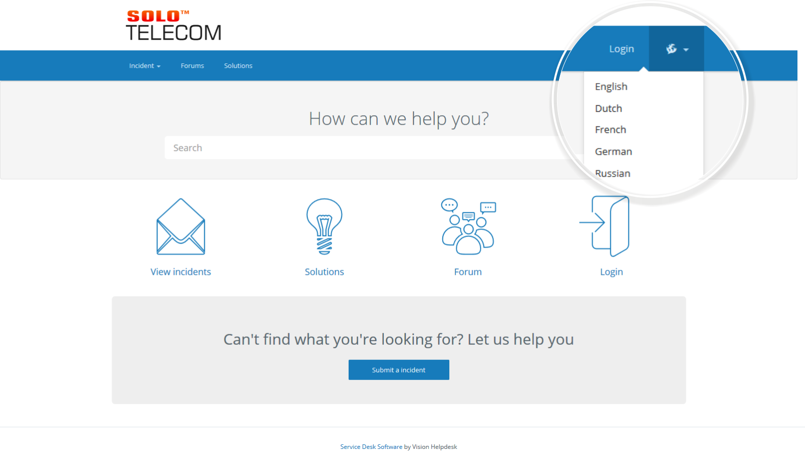 Vision Helpdesk’s Multi Language Help Desk feature allows you to translate both staff and customer portal in multiple languages, thus making it easy to manage multilingual help desk global team and customers all round the globe.