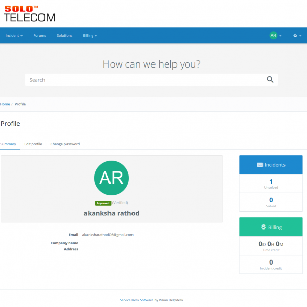 Responsive Self Service Customer Portal