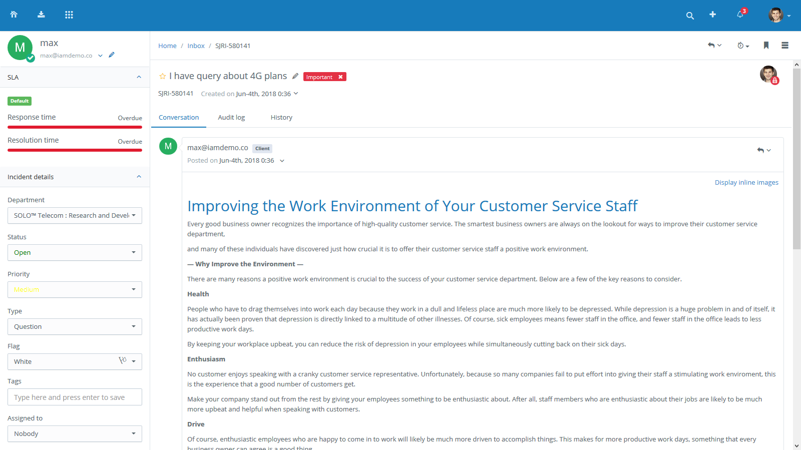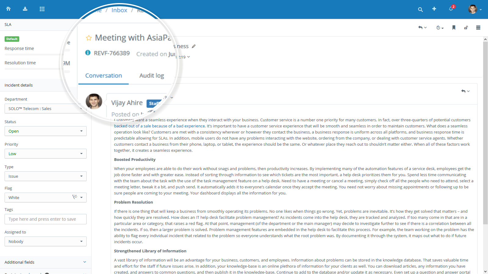 Email has a limitation its a one to one communication, where as in service desk system every incident has a incident hash using that you can track whole communication of staff agents with your customers. everyone in team is on one page.